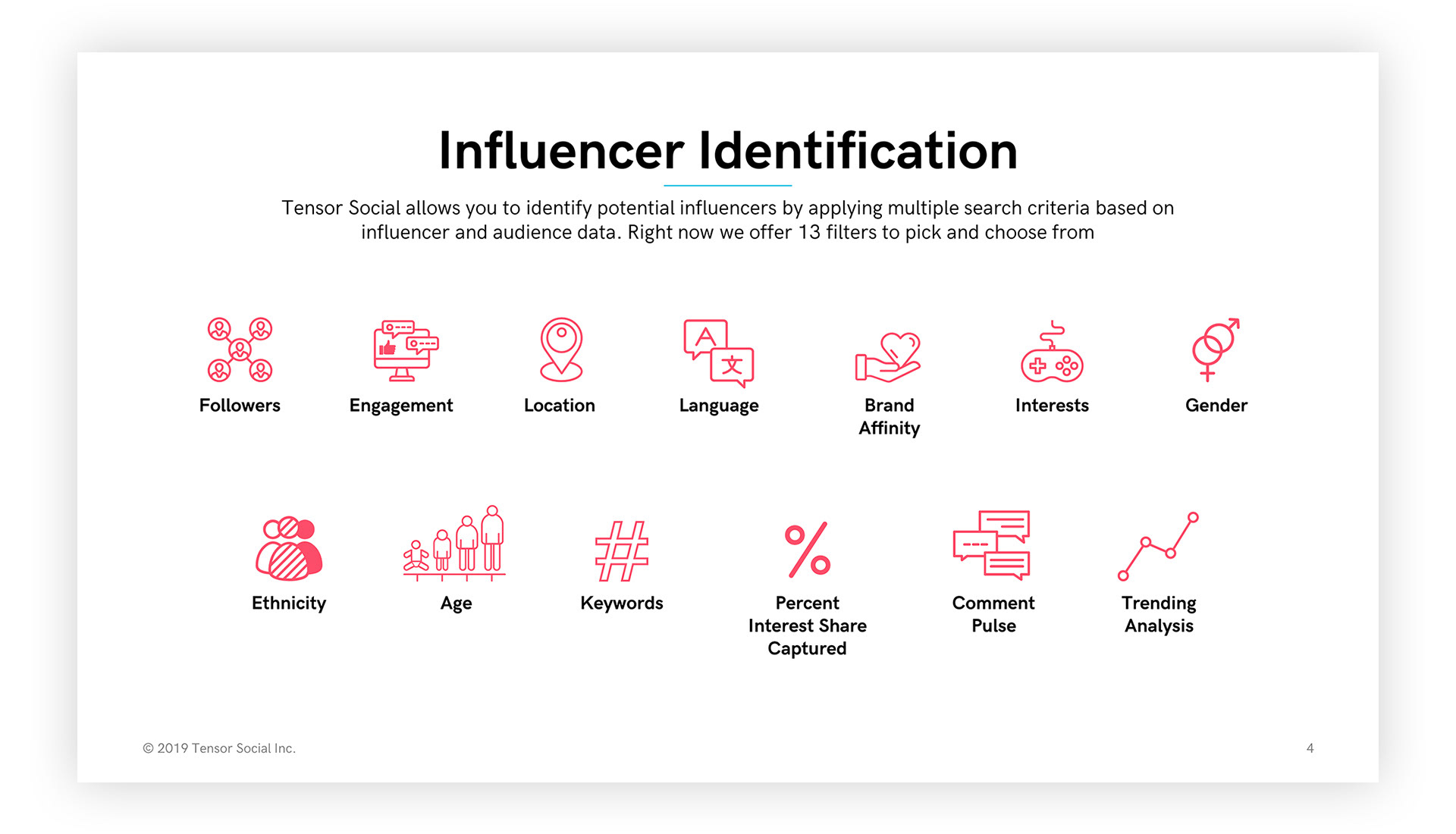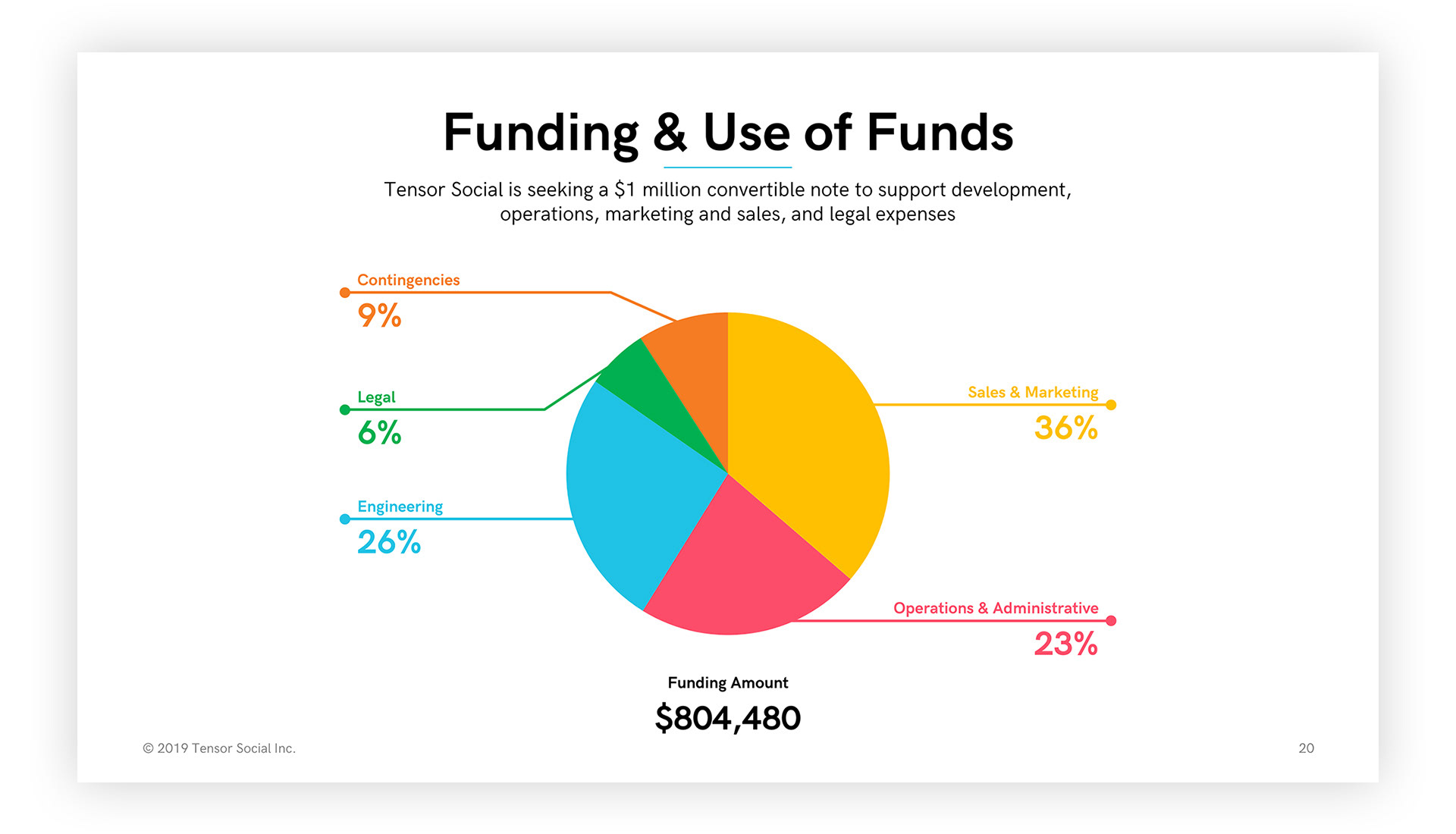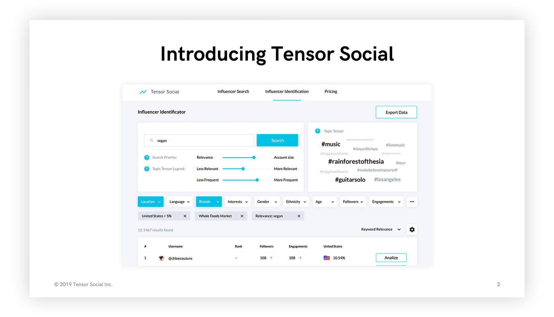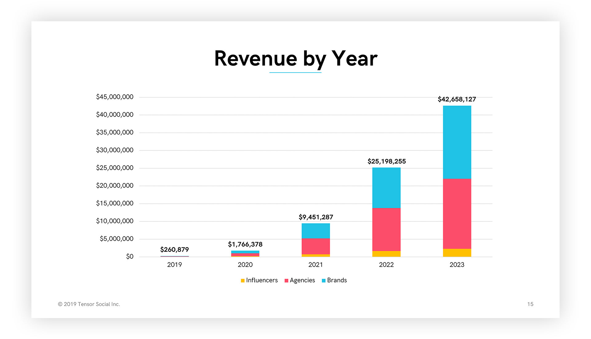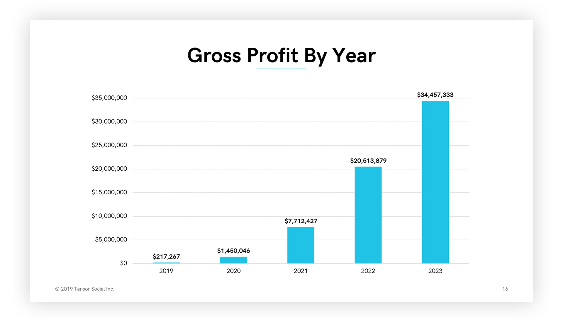 An investor pitch deck design for Tensor Social, a social media marketing tool that provides leading micro-behavioral and psychographic targeting tools for audience analysis and measurement